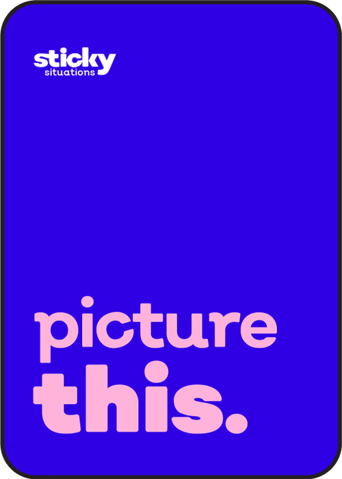 Feel like taking on the challenge with a friend? If you've got an even-numbered group, divvy up into pairs! Pick out a 'picture this' card first. Then, one person in the pair selects three random 'worst case' cards, and the other picks out three 'make the best of it' cards. Now, player one must present the worst case they think best fits the sticky situation, while player two puts down the card that they think would solve player one's worst-case scenario. It's a little bit of a guessing game, with hilarious results! So come on, let's